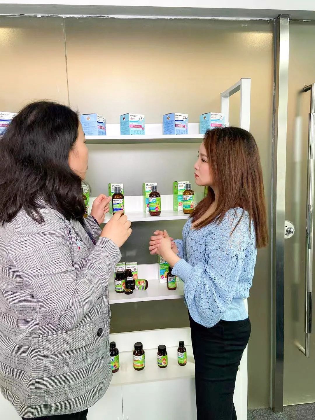 ▼在中国分公司蓓澳儿有一整墙的产品陈列