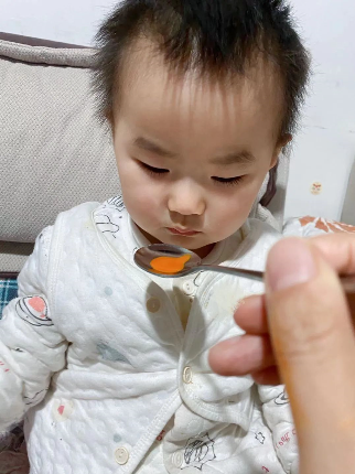 小豆丁1岁半了,吃了铁+复合维生素,因为是铁剂,稍微有点铁的味道。豆丁妈说怕她不爱喝,计划加在辅食中给她吃,没想到用勺就解决了,豆丁非但不排斥,自己还会指着瓶身嗯嗯的要喝。