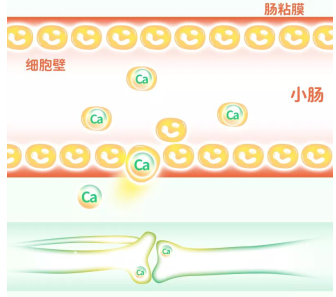 而到达小肠的时候,“坦克”卵磷脂还有其他作用,它和小肠上皮细胞膜结构相似,细胞膜见到仿佛“自己人”,于是“放行”更顺利。于是钙能直接从微胶囊释放到肠黏膜中,嵌入细胞间隙,顺利通关。
