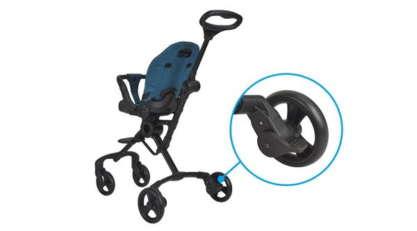 为什么宝宝在散步车里,没坐多久就会开始哭闹,最关键还是舒适度不够高。因为妈妈推拉过程中,经常会遇到路面凹凸不平的情况,加上有些品牌的散步车的车轮不够顺滑,难免有些颠簸,而m-cro迈古360散步车采用直径前轮6寸,后轮7寸的EVA车轮,前小后大的设计,让妈妈推行更轻松。加上车轮设计得比较宽厚,能够有效减震,宝宝也不容易因为乘坐不适而哭闹。