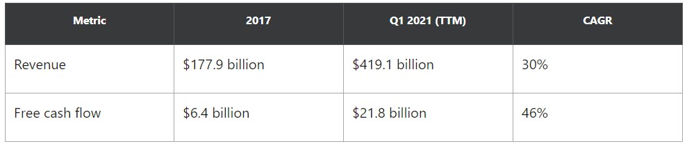 据外媒报道显示,在疫情期间其他零售公司都纷纷裁员的严峻情况下,Amazon却雇佣了数十万名新员工,帮助其应对线上业务需求的增长。2021年第一季度,Amazon的增长继续提速,北美市场和除北美外的其他国际市场的增幅分别达到了40%和60%。
