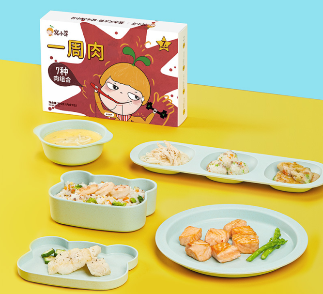 窝小芽较早入局婴幼儿生鲜赛道,凭借一款卡通馒头热销全网,频频出现在微娅等头部达人直播间,上市3个月便售出几百万包。在积累生鲜品运营经验后,窝小芽大刀阔斧切入婴幼儿生鲜市场。在产品形态上,窝小芽通过一周产品系列,解决了用户营养搭配的痛点,并让用户方便省心;在品类上,窝小芽开拓了婴童鲜食新类目,目前旗下生鲜品类目已涵盖主食及肉类,其中一周水饺、一周馄饨、卡通馒头、一周肉等产品深受消费者欢迎,并已成为全渠道婴童鲜食TOP1。