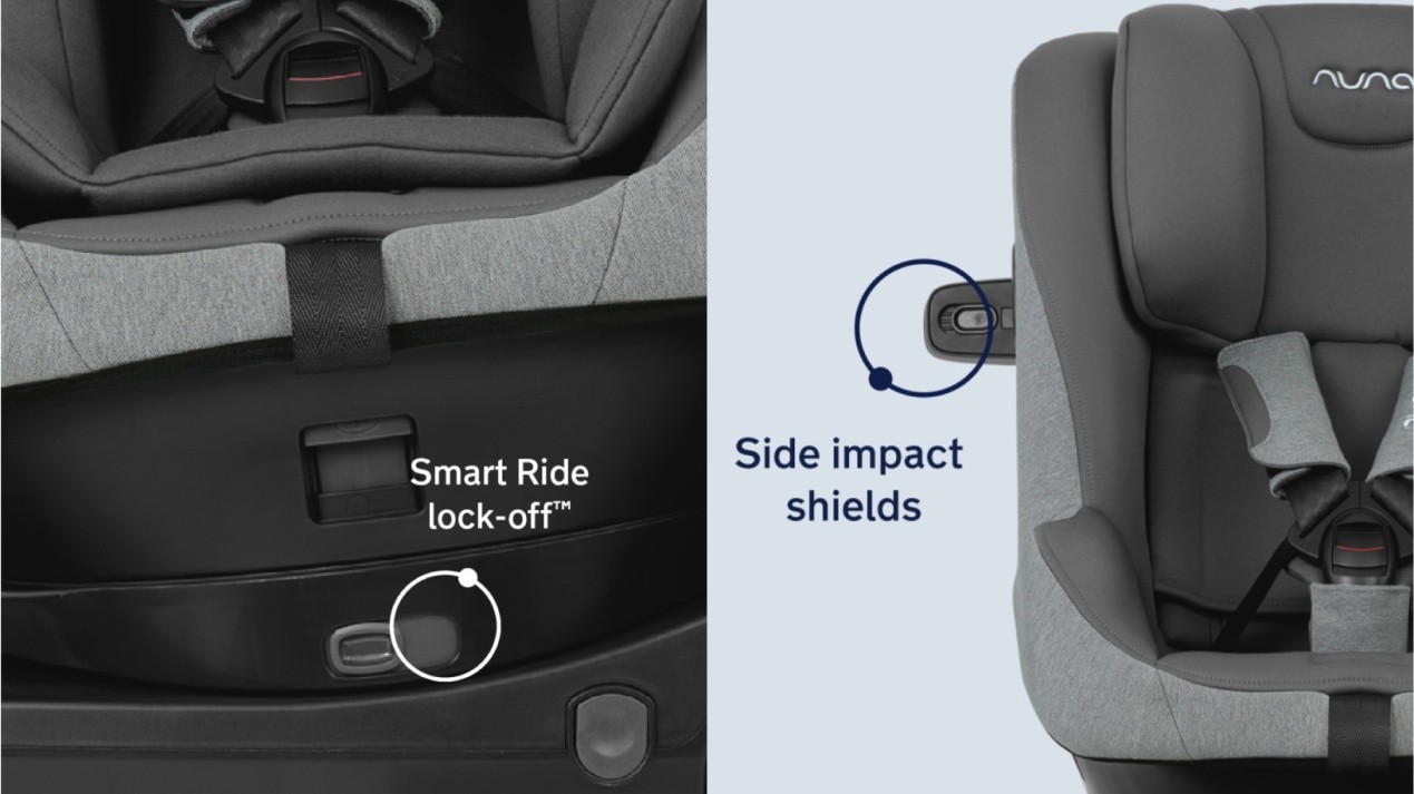 对于小宝宝来说,具备360°随心转功能的安全座椅实在是太方便了,可以让爸爸妈妈抱孩子上下车更方便。有了这个360°旋转功能,Nuna PRYM安全座椅正反的切换非常地方便,只要一个动作即可轻松完成转换,无需二次安装,此外PRYM还在底座上增加了一个i-SIZE智慧安全锁(后向防误用装置),锁住0-2岁后向乘坐,最好到4岁。