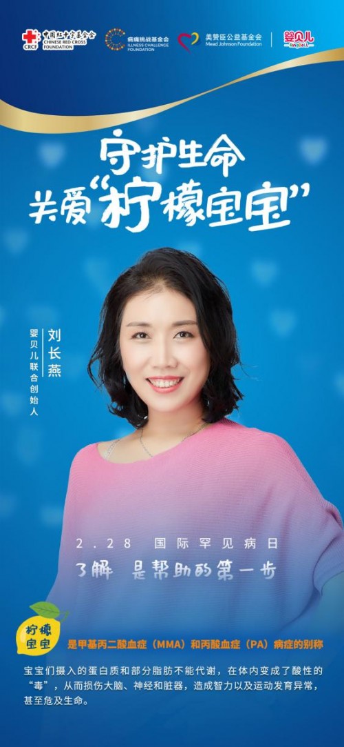 关爱“柠檬宝宝”,让爱不罕见。2022年2月28日是第十五个“国际罕见病日”,广州市美赞臣公益基金会携手中国红十字基金会、北京病痛挑战公益基金会,正式启动“罕见病关爱项目”,联合新浪公益,发起 #看见柠檬宝宝# 话题,邀请赵雅芝、王博文、汪东城等众多明星以及公益时报等国内主流媒体一同为“柠檬宝宝”发声,呼吁社会提高对甲基丙二酸血症及丙酸血症的认知,对患儿和家庭给予更多关爱,本次活动还获得婴贝儿的大力支持。