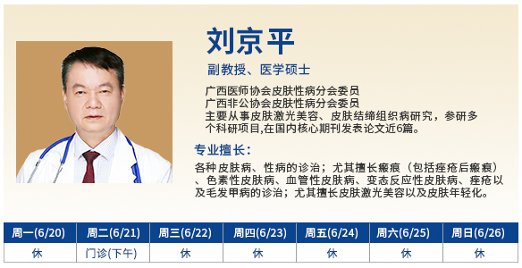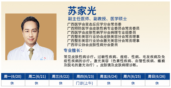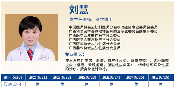 【医讯】6月20日—26日广西医科大学第一附属医院皮肤性病专科联盟专家团队排班表