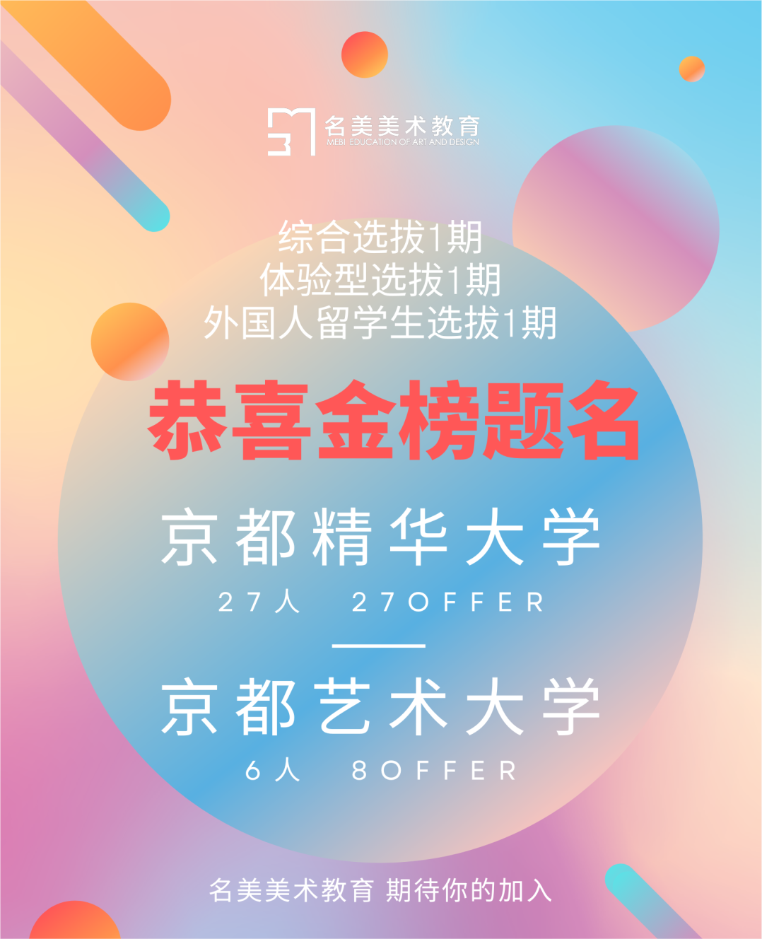 2022年的考试季开始啦!每年以京都艺术大学,京都精华大学为开始的考试季已经悄悄到来。在第一场考试中,名美的小伙们也收获颇丰。有27名学生合格京都精华大学综合型选拔1期,6名学生合格京都艺术大学体验型选拔1期和外国人留学生选拔1期。今年,由于口罩原因导致整体考试人数轻微上浮,较往年相比竞争也更加激烈了一些。因此名美美术教育也希望更多小伙伴打起精神来,迎接后续各校考试。