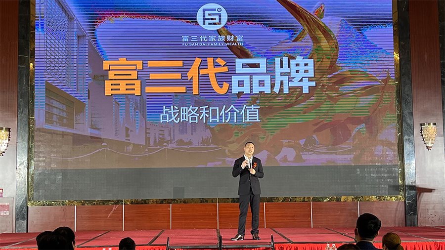 2022 年 12 月 10 日,深圳盛世传承管理咨询有限公司在东莞市厚街喜来登酒店成功举办“富三代”品牌发布会。董事长胡海、副董事长孙晓岐、执行董事周嵘,鑫晨晨财富研究院院长汪明升、399 生态 CEO 苏静、399 生态各大战区总裁以及公司的合作伙伴、新老客户出席了发布会,共同见证了“富三代”品牌发布的高光时刻。