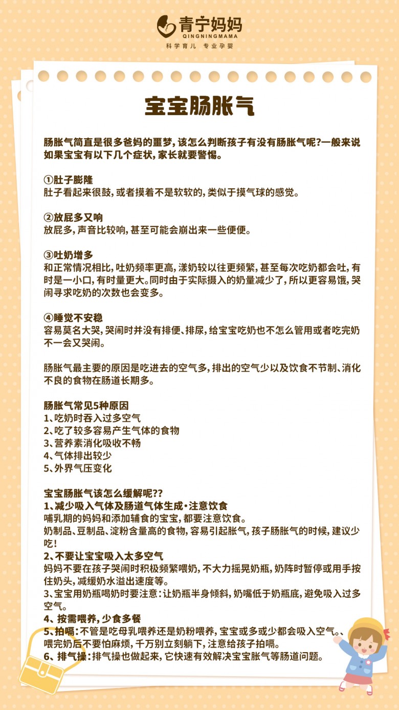 最近很多宝妈咨询青宁妈妈,关于宝宝胀气的问题,例如:宝宝胀气有哪些症状?胀气的原因是什么?宝宝胀气后怎么缓解?宝宝胀气要避免吃哪些食物?