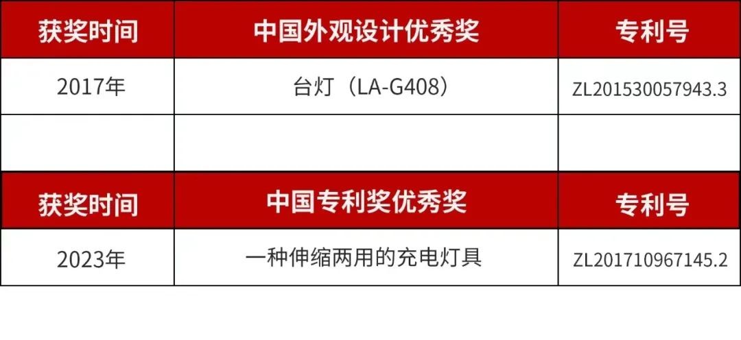 近日,国家知识产权局官网公布关于第二十四届中国专利奖授奖的决定,广东光阳电器有限公司(冠雅照明)的“一种伸缩两用的充电灯具”专利脱颖而出,荣获中国专利奖优秀奖。这是冠雅照明继2017年之后,第二次获得该项国家级荣誉!
