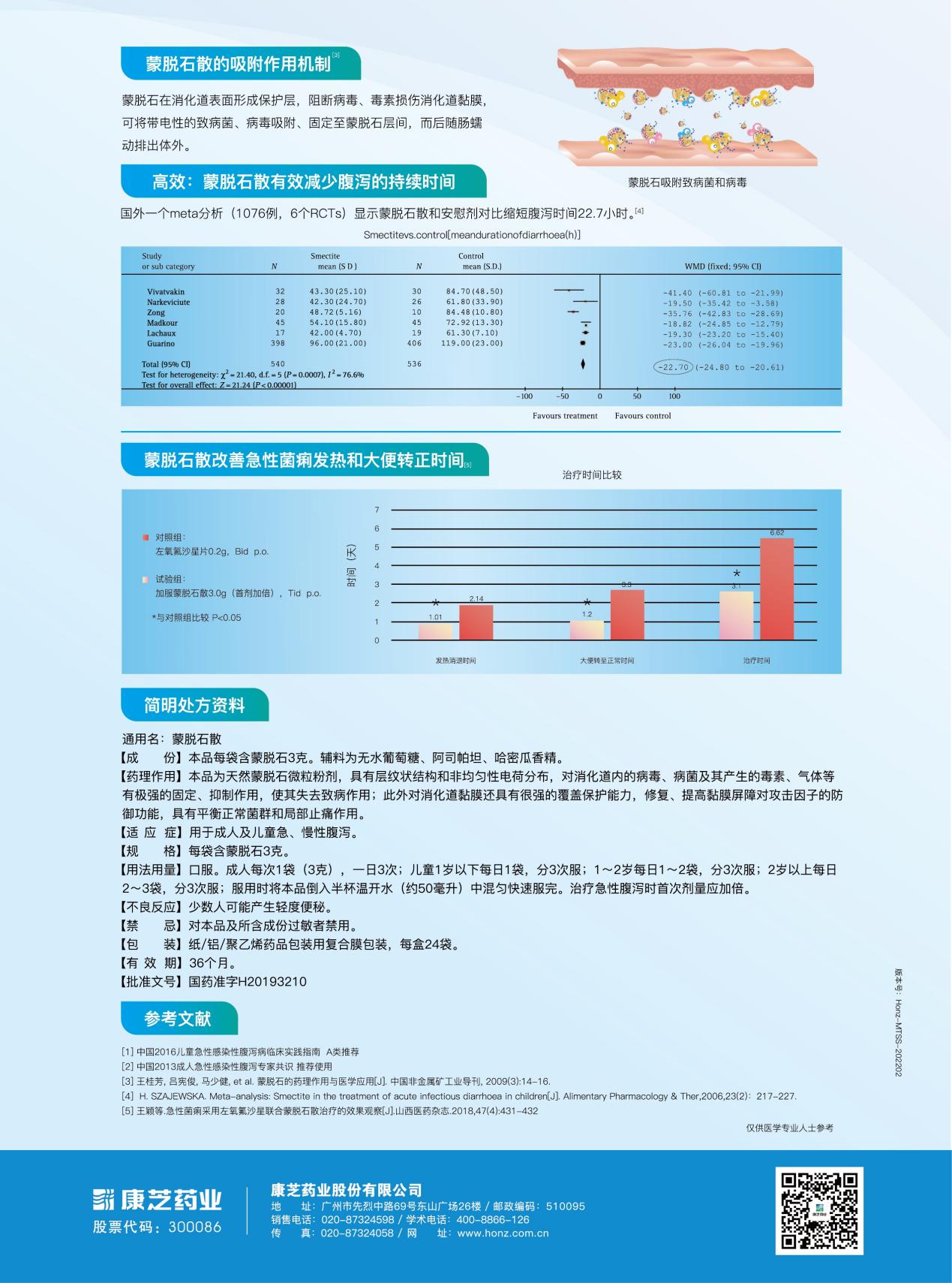 2020年底,国内上市公司康芝药业经过多年研发并生产的康芝®蒙脱石散经国家药品监督管理局批准,成功通过仿制药质量和疗效一致性评价!