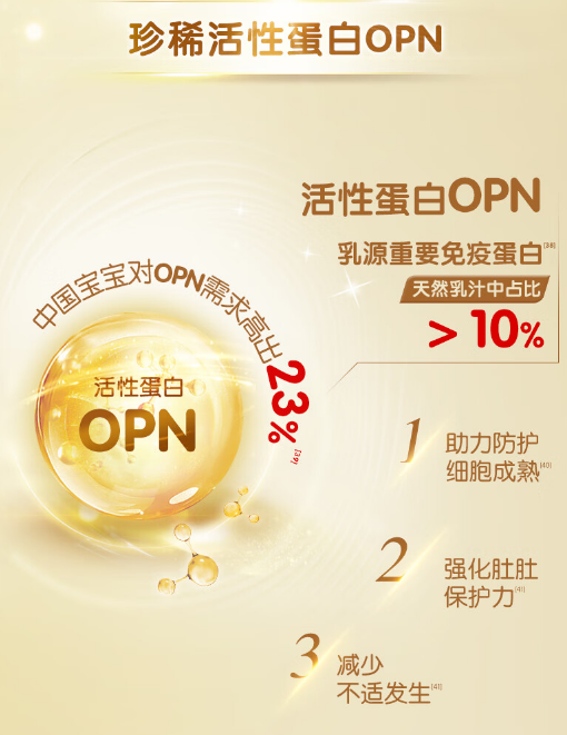 不仅如此,伊利金领冠珍护还添加了双重益生菌搭配45倍双重益生元,可以呵护宝宝的肠道健康,还能给宝宝超凡的保护力,添加了专利核苷酸组合+活性蛋白opn,可以显著提升宝宝的免疫力,激发宝宝的自护力。