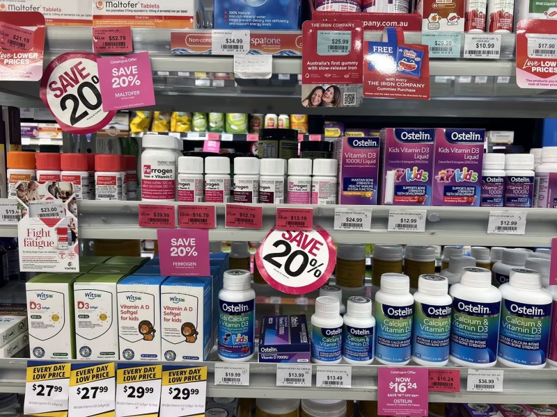 在悉尼Cincotta Discount Chemist 、Priceline Pharmacy、Eastwood Pharmacy等连锁药房,Witsbb健敏思的维生素AD和D3被摆放在醒目位置。药剂师Emily向记者透露:“这两款产品几乎每周都会补货,尤其是AD滴剂,经常有顾客一次性购买多盒。许多本地家庭从宝宝出生起就选择它们。”