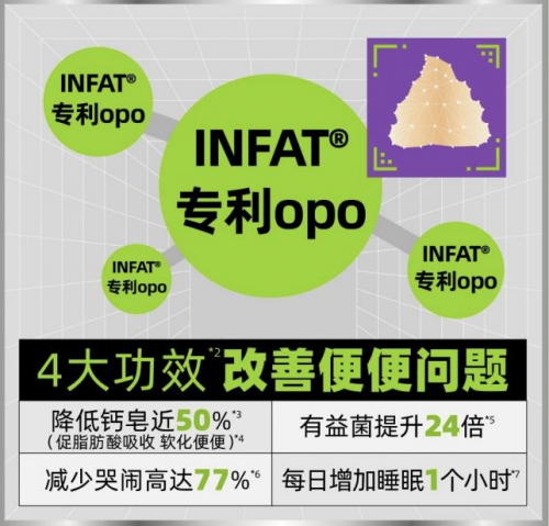 - 添加OPO结构脂,模拟母乳脂肪结构,促进钙和脂肪吸收,减少便秘风险。