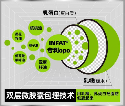 - 双层包埋技术:利用乳蛋白和乳糖对油脂进行两次包覆,形成微胶囊结构,保护不饱和脂肪酸免受氧化,保留天然活性成分。