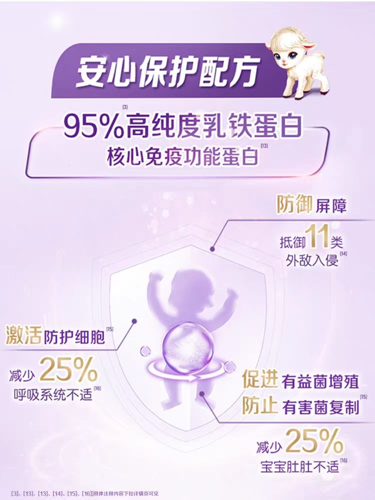 除了吃饱,吃出“抵抗力”更是现代父母的刚需。金领冠悠滋小羊舒享奶粉的科学配方堪称“守护天团”,它添加了纯度高达95%的乳铁蛋白,能有效帮助宝宝构筑自身防御系统;山羊乳中富含10倍类HMOs(母乳低聚糖类似物),能激发免疫球蛋白sIgA生成,为宝宝建立起强韧保护力,让家长更安心。