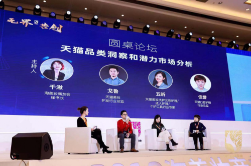大会现场特别举办的天猫超级圆桌论坛上,在淘美妆商友会秘书长千湫的主持下,三位来自天猫的特邀嘉宾:天猫美妆护发行业总监戈鲁、天猫美妆洗护女性护理/成人护理/个护工具行业专家五昕、天猫口腔护理行业总监佳誉,共同就2019美妆市场的变化,以及2020年行业的发展趋势和新机遇进行了探讨。