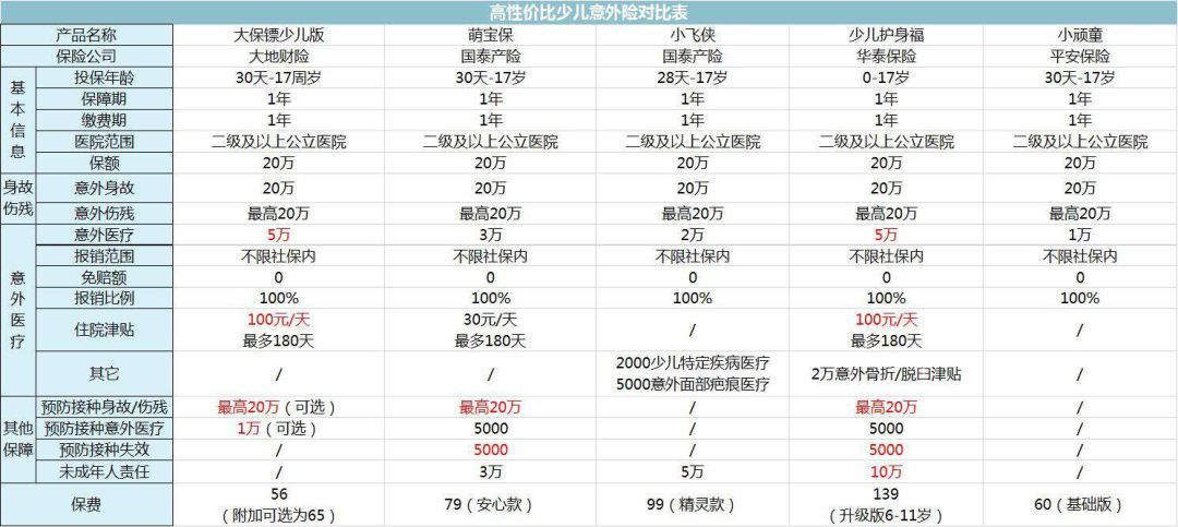 既然是给孩子买的意外险,那就要符合这一群体的特征: