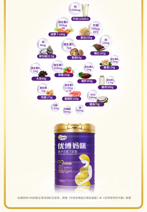 作为给哺乳期宝妈的母亲节礼物,优博妈咪添加优质乳清蛋白,增强自身免疫力,帮助胎儿脑部、体格发育;特别添加红枣粉、山药粉,帮助妈咪尽早哺育宝宝;强化叶酸、钙铁维生素的含量,帮助宝宝大脑和神经系统的正常发育;特别添加高品质藻油DHA,无鱼腥味,口感更好。准妈妈喝孕妇奶粉的好处就是获取更多营养,在保证自身身体健康的同时,更好助力胎儿发育。