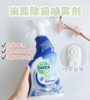 成分是过氧化氢、苯扎氯铵,去除水渍的效果还不错。但有浓烈的洁厕灵味道。这一款是厕所专用的消毒喷雾,喷出来的颗粒很大颗,每次喷完都要擦拭它,很麻烦。不能给孩子用哦~