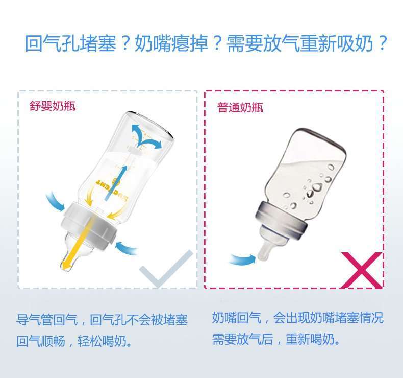 这点对新生儿来说非常重要,新生儿的胃呈水平位,括约肌发育不完善,假如吞咽过多空气就容易出现溢奶。所以在挑选奶瓶时,要看看奶瓶气压的稳定性,比如奶瓶温度变化,就改变了奶水的流速,这种奶瓶千万要别选,瓶内压力不稳定,容易导致宝宝呛奶!