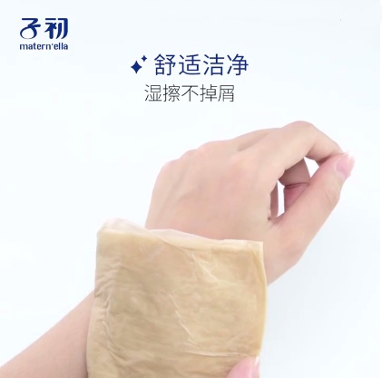 其次,子初刀纸有足足6层厚呢;竹纤维密度高,湿水不易破,灰常有韧性,且柔软轻肤;更更重要的是免撕实用,反复“蹂躏”都不会掉絮呢,能够避免纸屑进入产后伤口引发炎症,真的超赞嘚!
