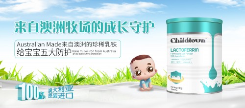 Childtown茵童时光乳铁蛋白,澳洲原装进口,包含五重免疫防护:乳铁蛋白+唾液酸+IgG+维生素C+低聚半乳糖。它的口感非常好,也非常容易冲泡,粉质很细腻,澳洲进口TGA认证。