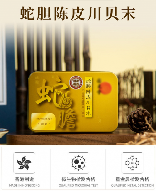 此外,蛇胆陈皮川贝末须经过多项品质测试,包括微生物及重金属等测试,产品有效性及安全性更得以肯定,百年品牌品质保障!