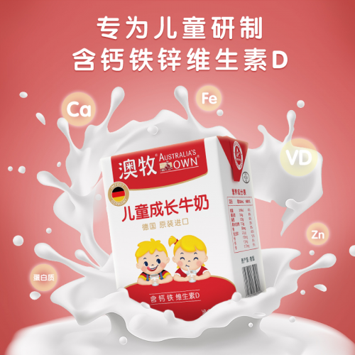 在营养配方上,全新包装的澳牧进口儿童牛奶保留了经典营养配方。一方面,它拥有较市面上大多数儿童牛奶更高的蛋白质含量,每100ml牛奶的蛋白质含量高达3.4g,远高于国家标准,为孩子们生长发育提供充足的营养能量。另一方面,它的配方中添加了有助于骨骼生长的钙、维持儿童食欲的锌、有助于预防少儿佝偻病的维生素D,以及构成血液、脑组织的重要元素——铁。多种营养帮助均衡儿童膳食营养,让孩子们每天都能在充足营养的基础上保持活力。