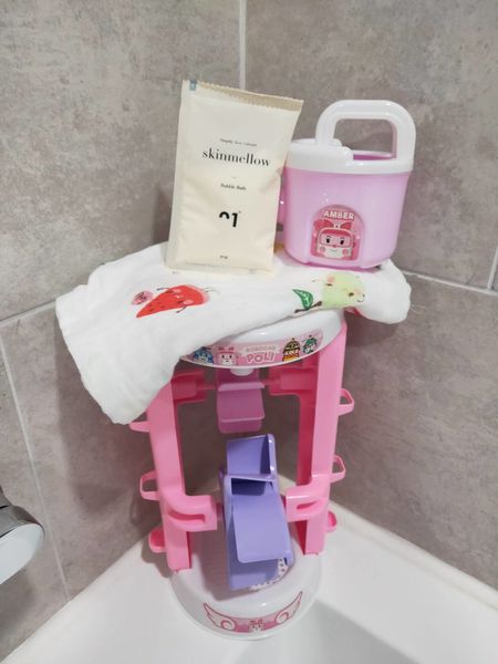 这时妈妈先在旁边洗澡,再一起入浴帮女儿洗头发,可以一次完成三件事,实在太方便!