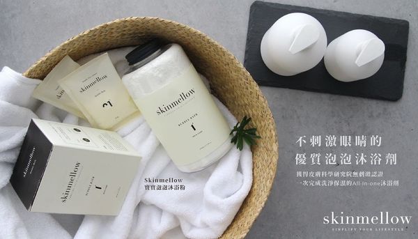 「Skinmellow的泡泡浴粉」是All in one,洗头、洗澡、泡澡、护肤、一次完成。